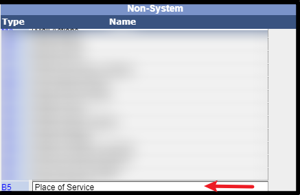 Step 4: Under “Non-System” search for “Place Of Service” and click on the “B5′ hyperlink >>