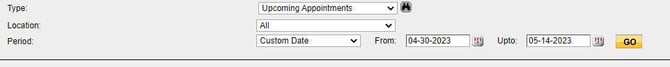 Step 2: Click on Type >> Select Upcoming appointment.